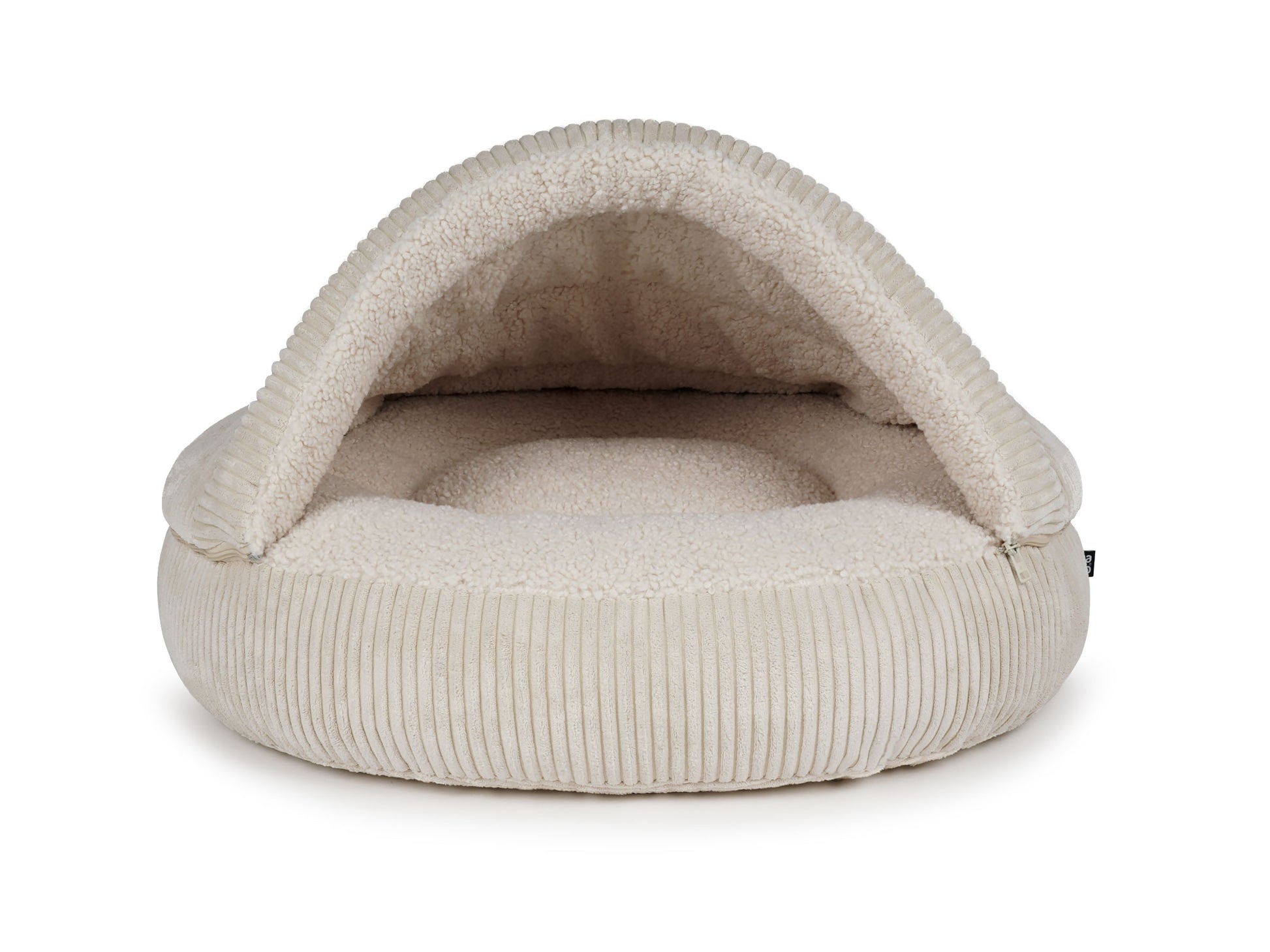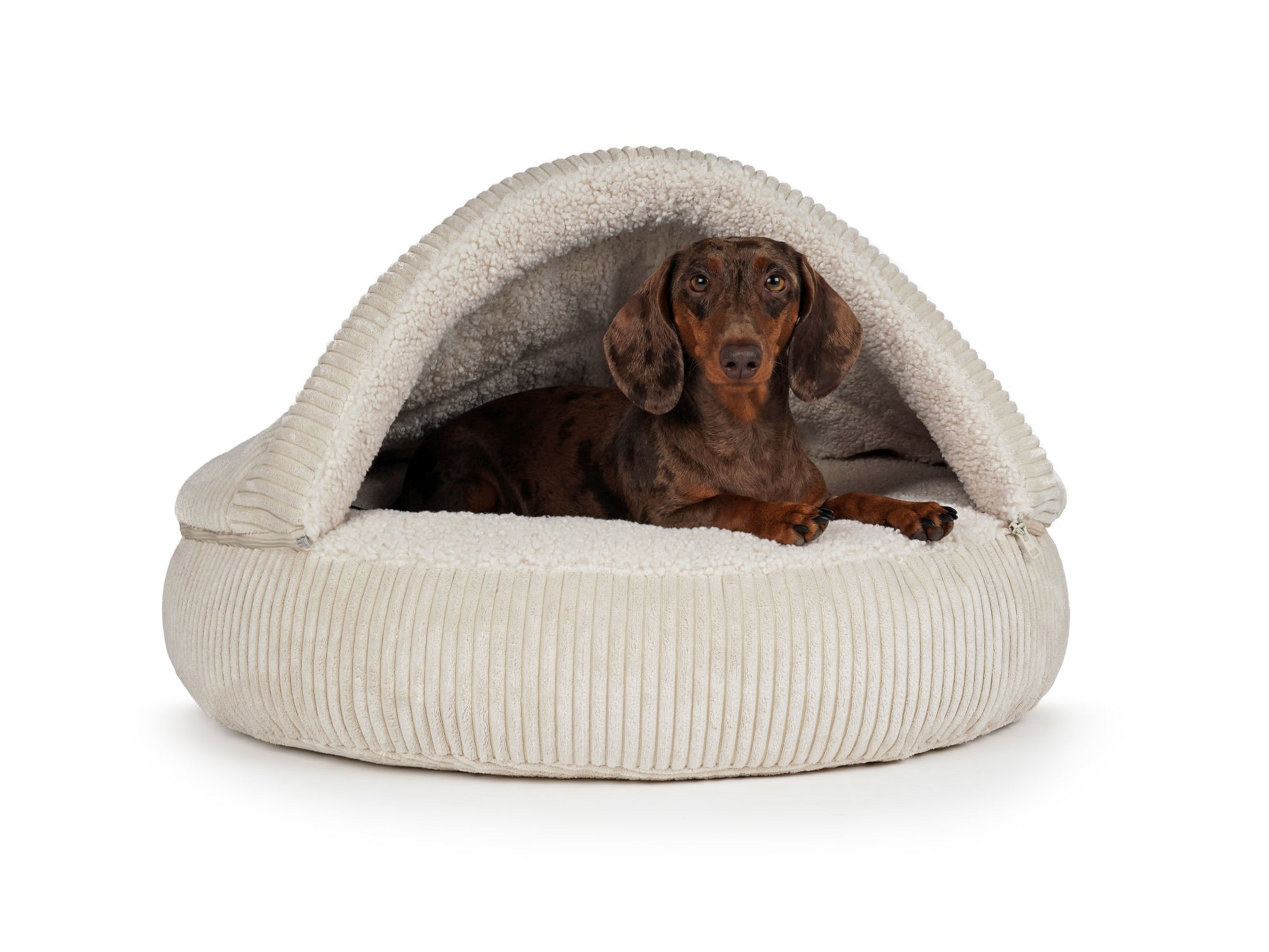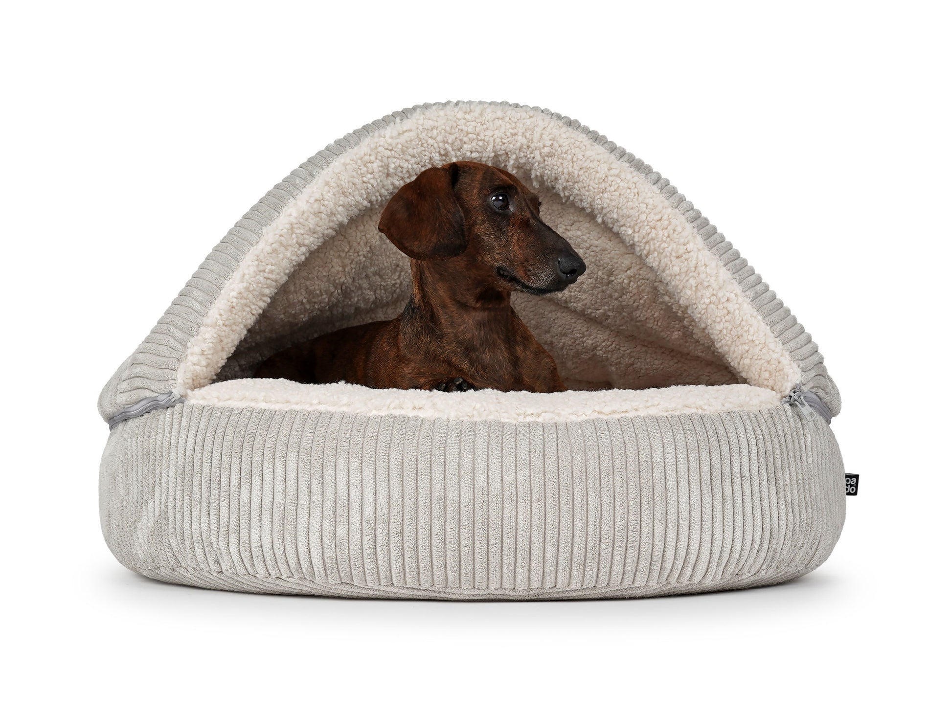 Hundehöhle aus schönem Cord-Stoff mit abnehmbarem Dach. Gemütlichkeit in jeder Ecke.