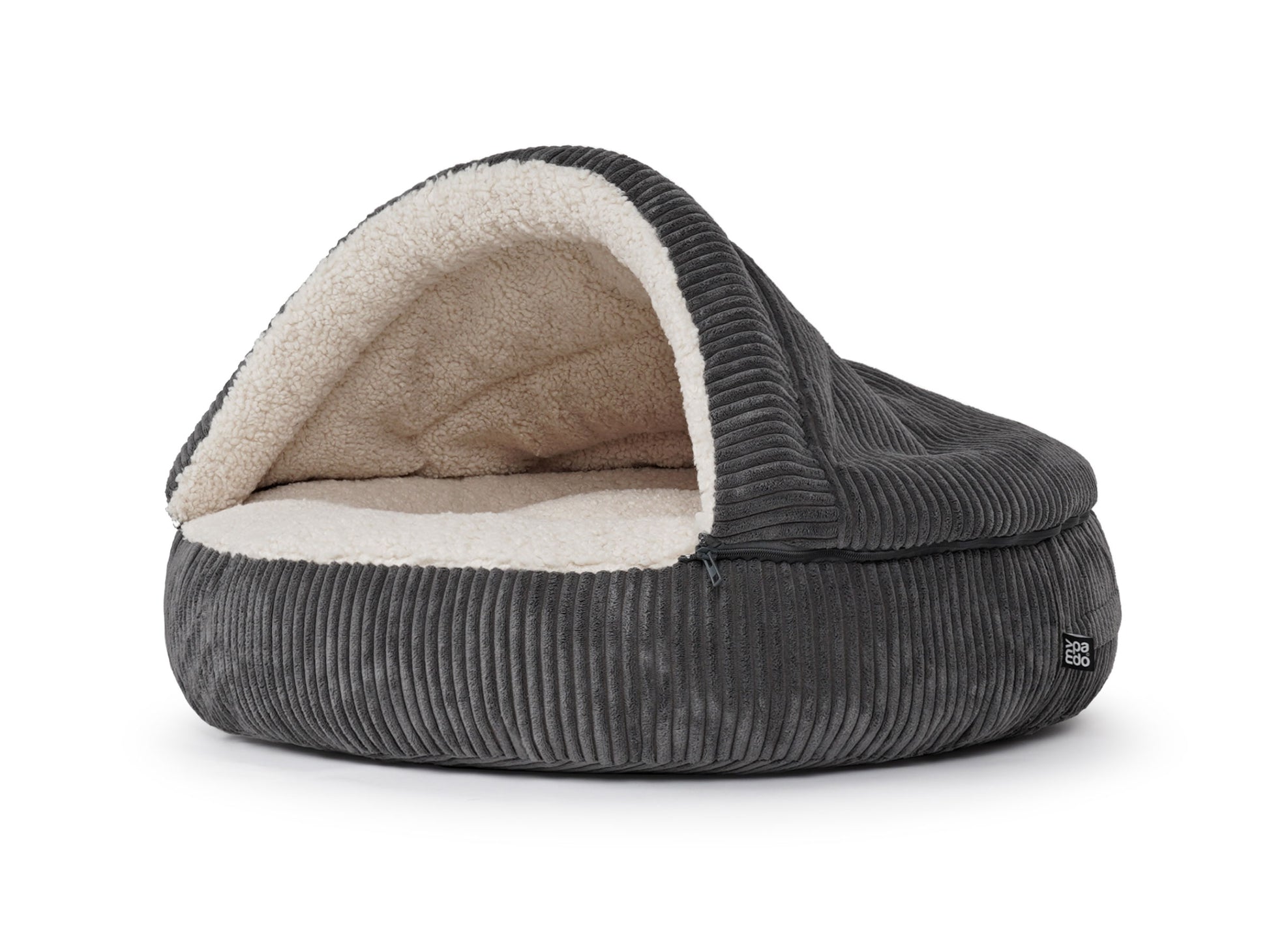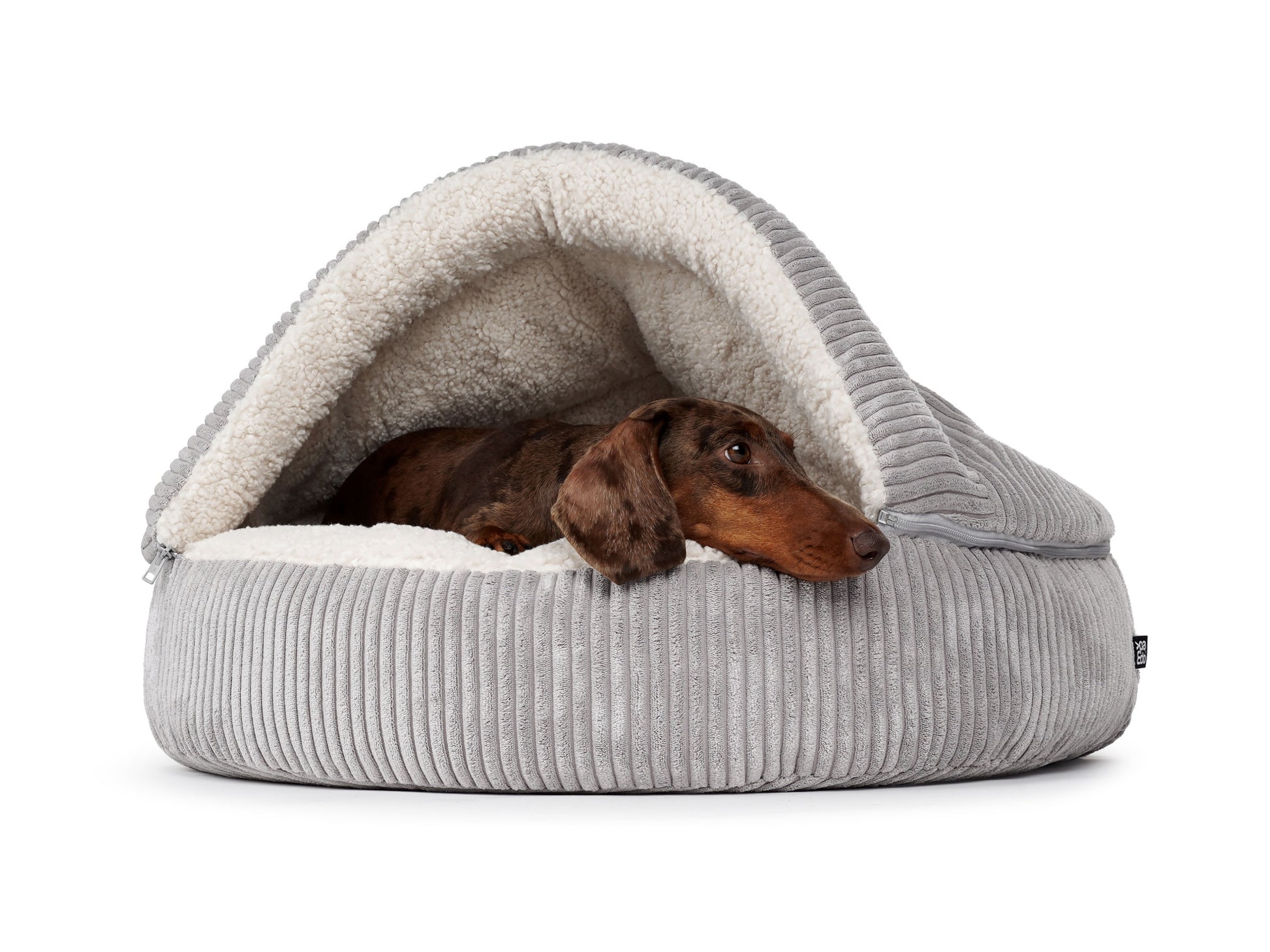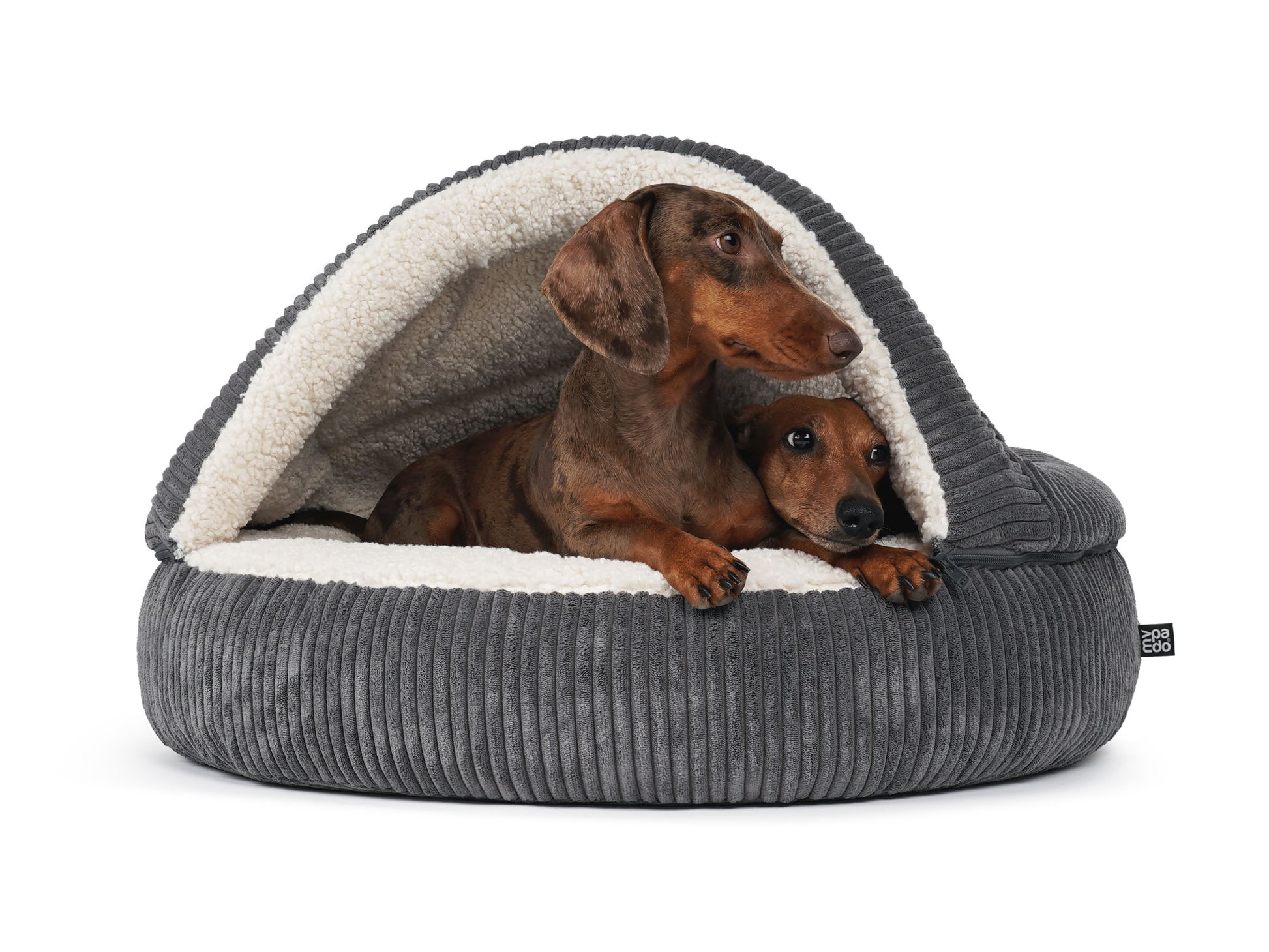 Hundehöhle aus schönem Cord-Stoff mit abnehmbarem Dach. Gemütlichkeit in jeder Ecke.