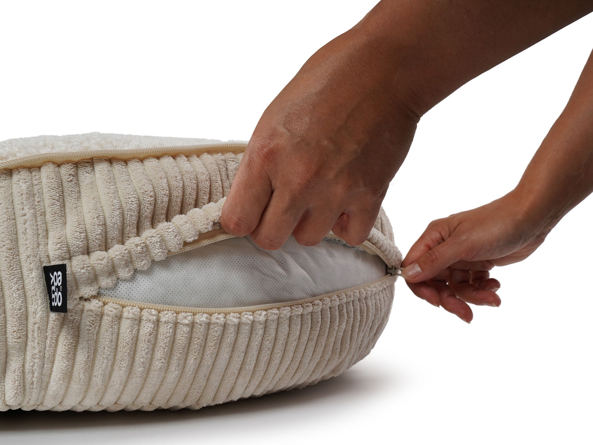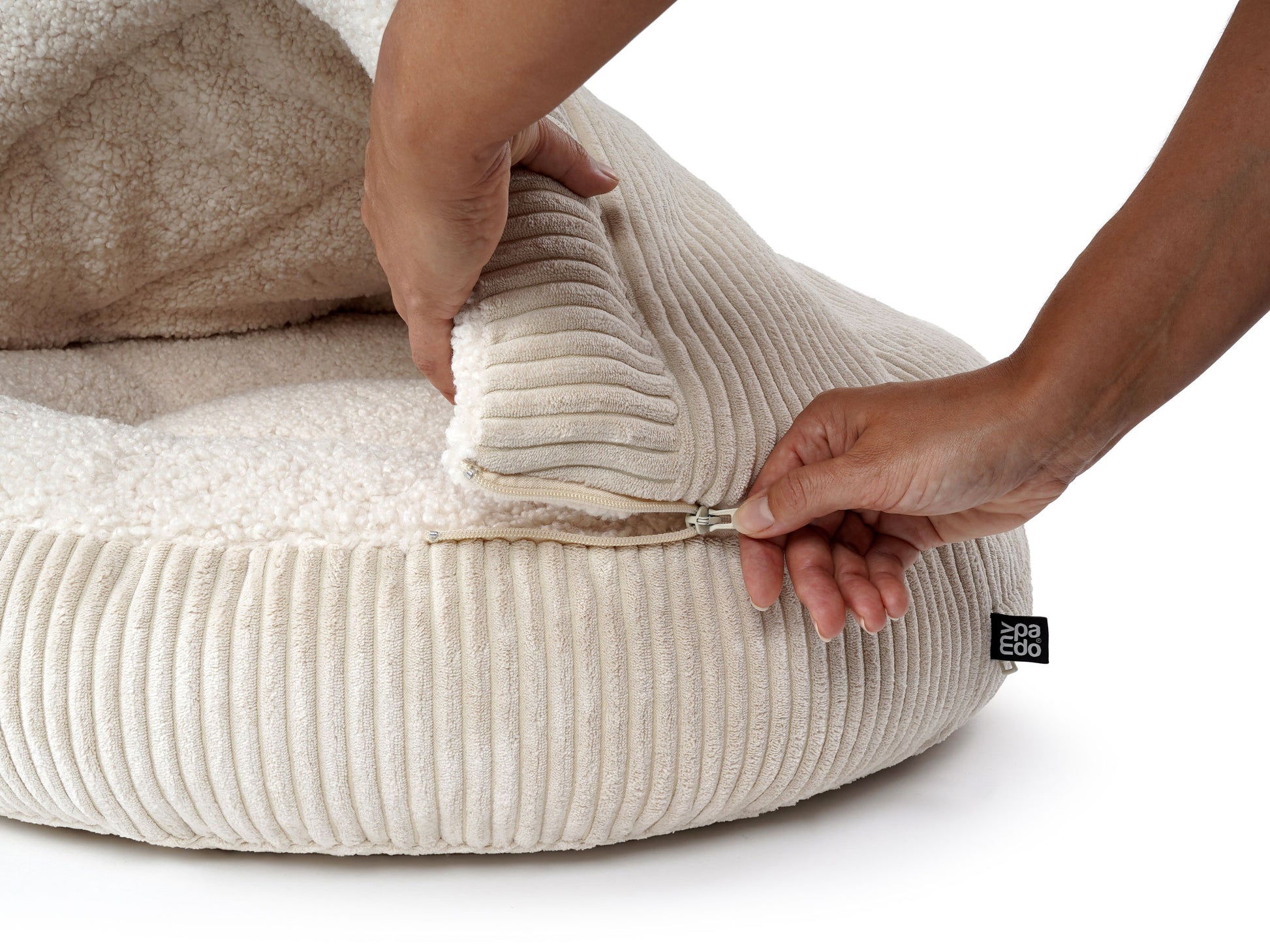 Damit du und deine Fellnase auch möglichst viel Freude daran habt, lässt sich der Bezug über einen rundum eingenähten Reissverschluss abziehen und bei 30°C in der Waschmaschine waschen.