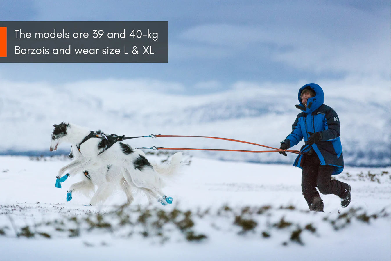 Unsere Long distance booties wurden in Zusammenarbeit mit den besten Mushern der Welt entwickelt und werden von ihnen sowohl beim Training als auch bei Rennen eingesetzt. Der elastische Klettverschluss sorgt dafür, dass der Bootie jedem Hund passt und gut an den Pfoten sitzt. Der Long distance bootie ist bequem für den Hund, da das Material leicht und weich ist. Er bietet Platz für die Krallen, damit sich der Hund damit natürlich bewegen kann.